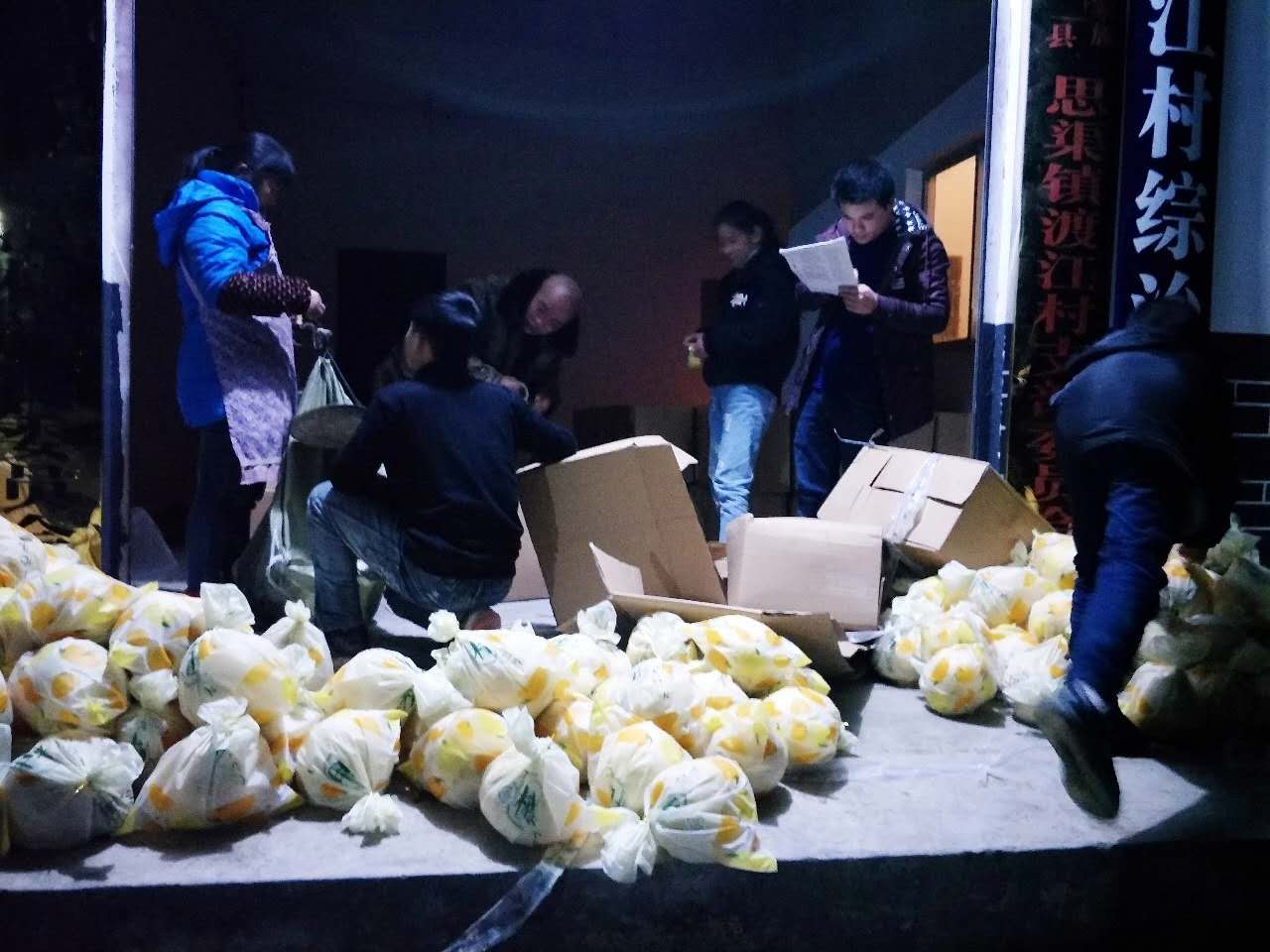 村民們得知楊聰不回家過年,但準備給家人寄點特產年貨,紛紛把自家生產的花生、豆腐幹、臘肉、柚子、辣椒麵等各種土特產送到他的住所——村委會的一間辦公室改造的宿舍,叫他一並寄回廣西貴港的家裏。