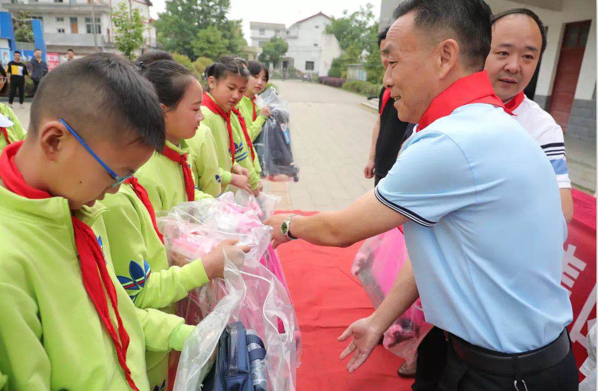 公司為180名學生發放了書包,並為他們送去了節日祝福,鼓勵他們勤奮學習,長大後做一個對社會、國家有用之人。不少學生接到書包後,敬起了標準的少先隊隊禮。