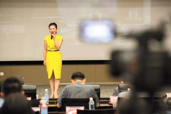 7月12日,山鋼集團舉辦“中國夢·新時代·祖國頌暨建功魅力山鋼”百姓宣講比賽。此次宣講比賽共有來自山鋼所屬各單位推薦的故事類、曲藝類、視頻類參賽作品47件,從中評選出一、二、三等獎。圖為獲得一等獎的選手宋雪在進行宣講。 (特約通訊員 李建輝 攝)