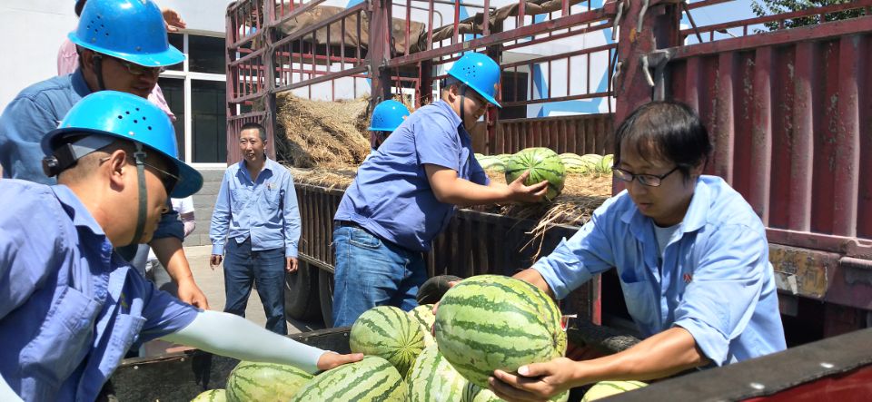 suifeishengxiahaifuhu,lieriyanyanyangchiyan。liqiuyiguo,liangfengweizhi,gaowenchixu,weijinyibuzuohaogaowentianqizhigongfangshujiangwengongzuo,qieshibaozhangguangdazhigongdeshentijiankang,8月14日,漢鋼公司工會將精心準備的西瓜及時配發到一線各崗位,把清涼送到職工手中,把關懷送到職工心裏。