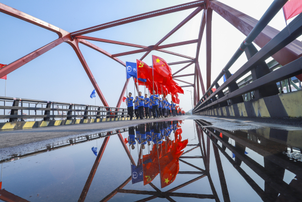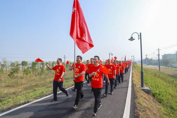 方大九鋼此次活動以“看最美岸線,賞生態工廠,慶七十華誕”為主題,舉辦千人健步行,共有方大九鋼員工、員工家屬和研學小記者、jiujiangyuhukoupaotuansanzhiduiwu,fenbiecongsantiaoluxiantubuhuozhepaobuxingjinzhichangjiangzuimeianxian,ganshouqiyehuanjingdejubian,linglveyanjianganxiandexiumeifengguang,yilufenjin,yilugaoge。sanzhiduiwuhuishihoutongchang《我和我的祖國》,齊聲高喊“祖國,我愛您!祝您生日快樂”!現場壯觀熱烈。