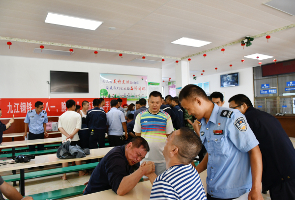 “加油!”“使勁!”“壓下去!”……7月31日下午3點,方大九鋼公司一食堂內人聲鼎沸、熱鬧非凡,“慶八一,腕力王”退伍軍人掰手腕比賽正如火如荼開展中。