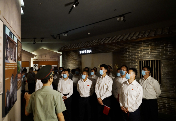 參can加jia活huo動dong人ren員yuan首shou先xian來lai到dao位wei於yu韶shao關guan市shi仁ren化hua縣xian城cheng口kou鎮zhen的de紅hong軍jun長chang征zheng粵yue北bei紀ji念nian館guan參can觀guan。城cheng口kou鎮zhen是shi紅hong軍jun長chang征zheng入ru粵yue的de重zhong要yao一yi站zhan,紅hong軍jun成cheng功gong在zai這zhe裏li突tu破po國guo民min黨dang精jing心xin設she置zhi的de第di二er道dao封feng鎖suo線xian。紅hong軍jun長chang征zheng粵yue北bei紀ji念nian館guan布bu展zhan主zhu要yao內nei容rong為wei中zhong央yang紅hong軍jun於yu1934年10月25日至11月14日長征過境粵北的曆史和紅軍文物,通過多種表現手段,栩栩如生地展現出紅軍長征經過粵北的曆史事件和粵北紅色文化曆史。