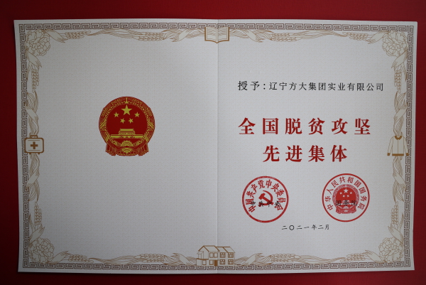 遼寧方大集團榮獲“全國脫貧攻堅先進集體”
