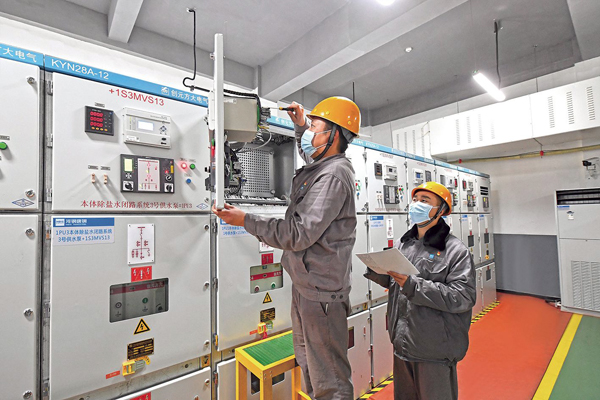 12月22日,河鋼唐鋼動力部電氣點檢作業區黨員在1號高爐循環水高壓配電室進行預防性試驗。 (趙輝 攝)