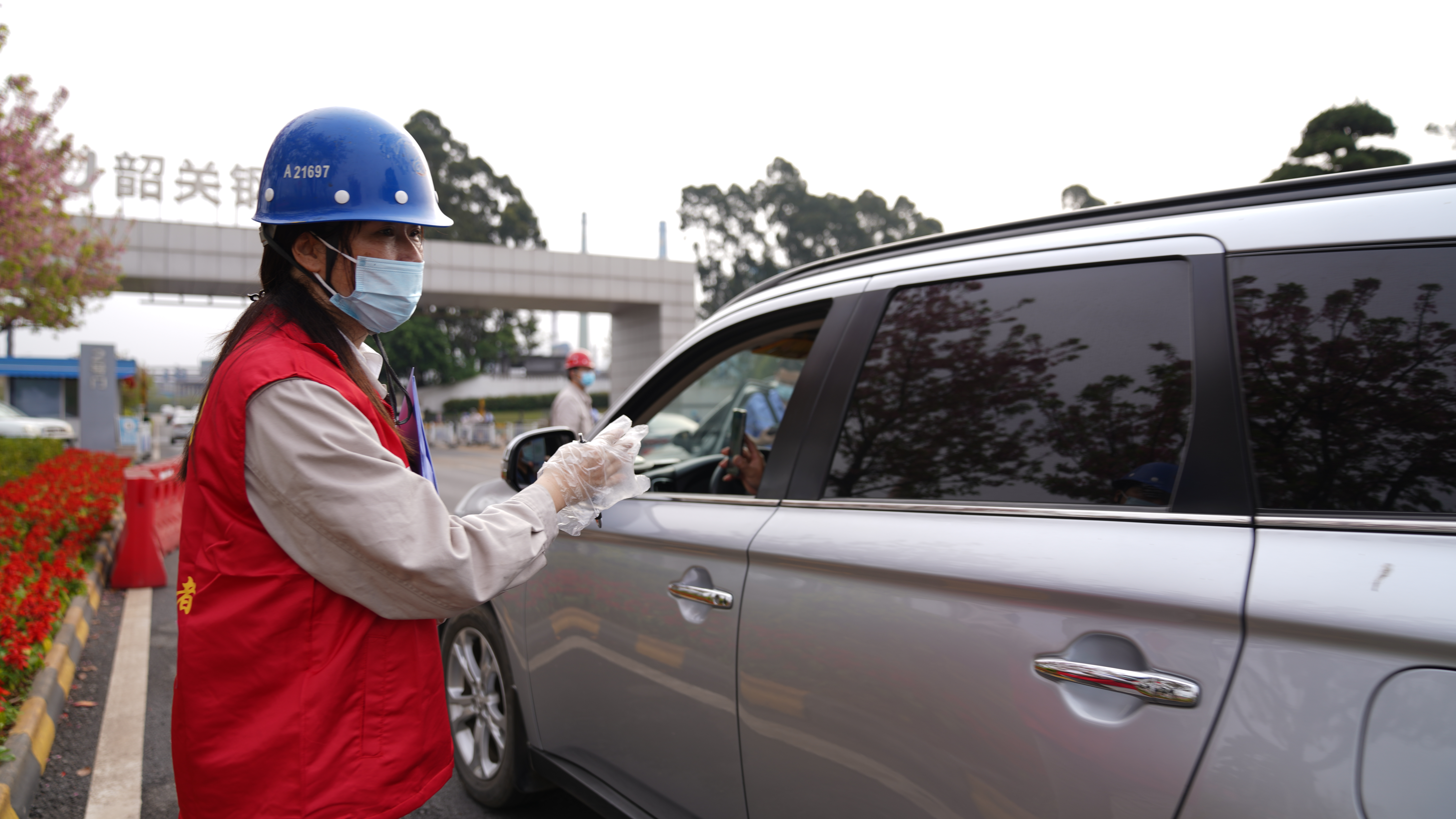 韶鋼1號門崗、2號門崗是物資進出、員工和協力人員上下班最重要的關口,尤其是早上6點10分-6點40分是協力人員上崗的高峰期,7點10分-8點30分更是員工上崗的高峰期。麵對源源不斷的進廠車輛,誌願者們不停地抬起、放下手臂,逐一查驗粵康碼、行程碼,對未按要求佩戴口罩者,不厭其煩、耐心解釋,對進入廠區的汽車、摩托車司機認真把關,逐一排查,對異常情況進行登記上報。