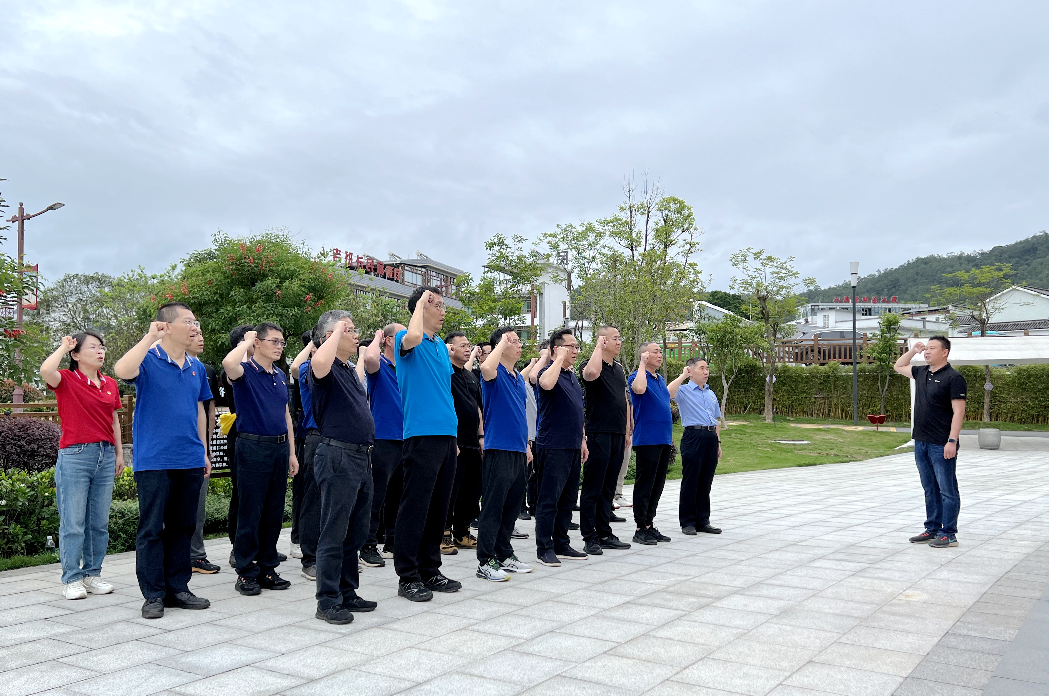 參觀展覽後,大家麵向鮮紅的黨旗,重溫入黨誓詞。在鏗鏘的誓言中,黨員們內心受到洗禮,理想信念更加堅定。