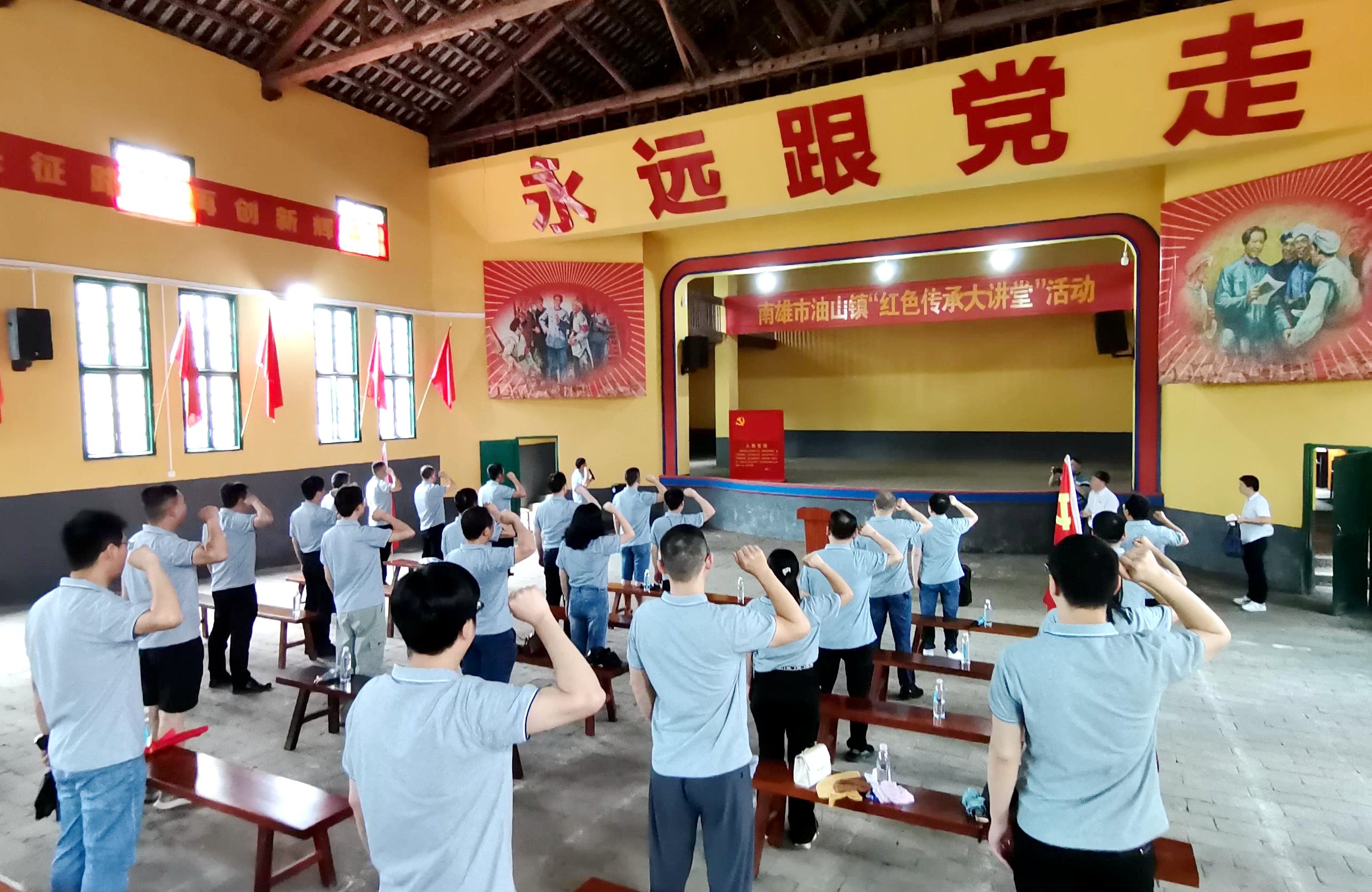 在上朔人民會堂,全體黨員一起重溫入黨誓詞,昆侖科技負責人領誓並現場做講話。他指出,今天是建黨102周年的偉大節日,102年前,中國共產黨在上海誕生,帶領億萬中國人民進行了新民主主義革命,推翻帝國主義、封建主義、官僚資本主義的統治,建立了新中國。102年後的今天,我們來到南雄油山重走長征路,這是我們以實際行動向為黨為國獻身的革命先烈們表達崇高敬意,全體黨員要認真感受革命先輩披荊斬棘、篳路藍縷的革命曆程,學習革命先輩不怕苦、不怕犧牲的崇高精神。