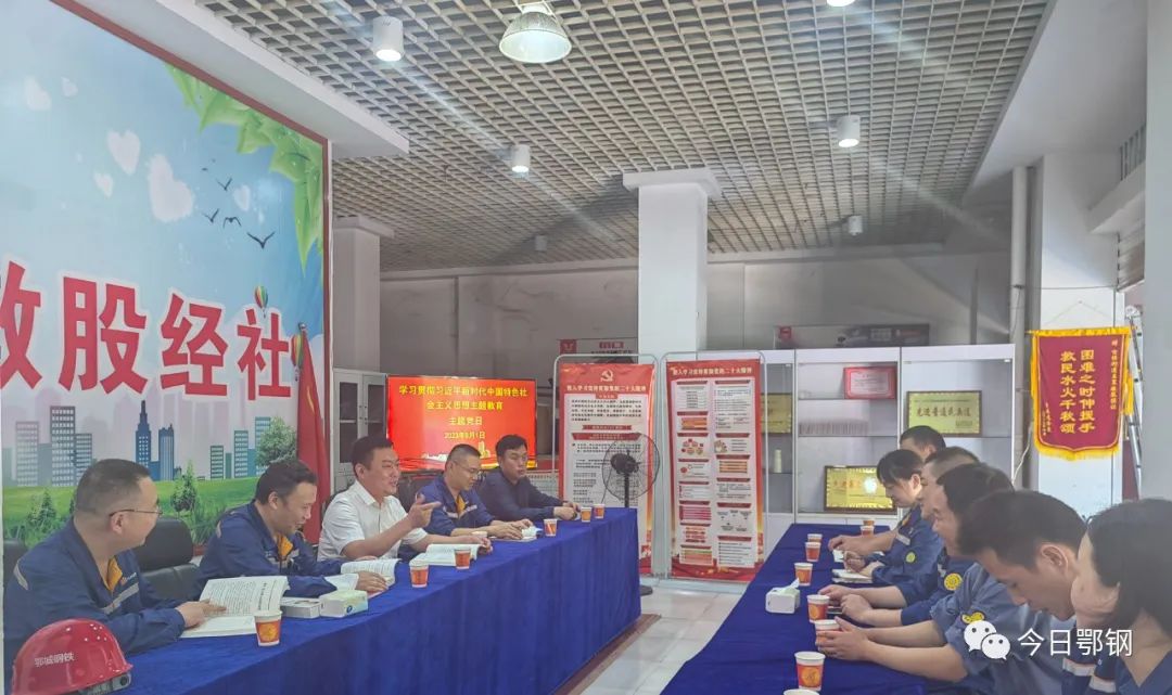三方黨員代表一起開展主題教育專題學習,交流學習心得,並就黨建工作經驗進行交流探討。五裏墩股經社黨委對鄂鋼近年來給予社區的支持表示感謝,使得周邊居住生活環境得到很大改善。