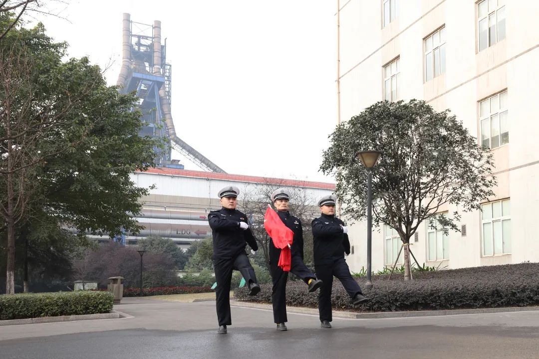 12月23日,山城的太陽伴隨著晨霧緩緩升起,重慶鋼鐵員工整齊站在管控大樓國旗下舉行升旗儀式。護旗手出列!在zai員yuan工gong的de注zhu視shi下xia,護hu旗qi手shou們men邁mai著zhe鏗keng鏘qiang有you力li的de步bu伐fa將jiang國guo旗qi護hu送song至zhi升sheng旗qi台tai。伴ban隨sui著zhe慷kang慨kai激ji昂ang的de義yi勇yong軍jun進jin行xing曲qu,五wu星xing紅hong旗qi冉ran冉ran升sheng起qi,員yuan工gong瞻zhan仰yang紅hong旗qi升sheng起qi的de同tong時shi,也ye把ba鋼gang鐵tie報bao國guo、鋼鐵強國精神注入了莊嚴的升旗儀式。