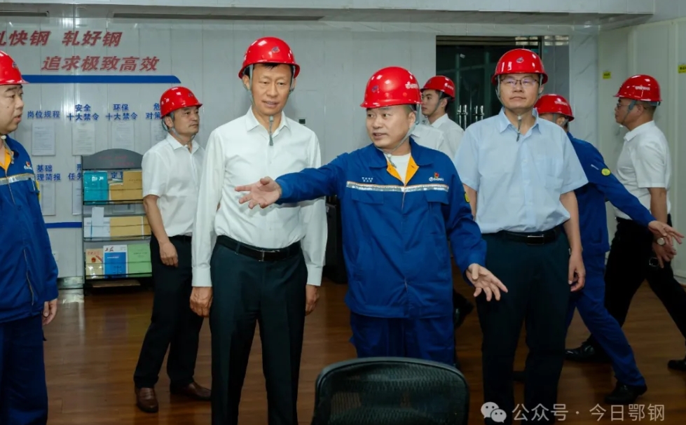 8月30日,廣東廣物中南建材集團有限公司黨委書記、董事長胡灝,香港創誌集團董事長張錦彬一行來訪鄂鋼。該公司高級副總裁(主持工作)黃大軍陪同客人現場參觀調研,雙方就商務合作事宜進行深入交流,並達成共識。(文:魏鋼、鄭青 圖:桂多)