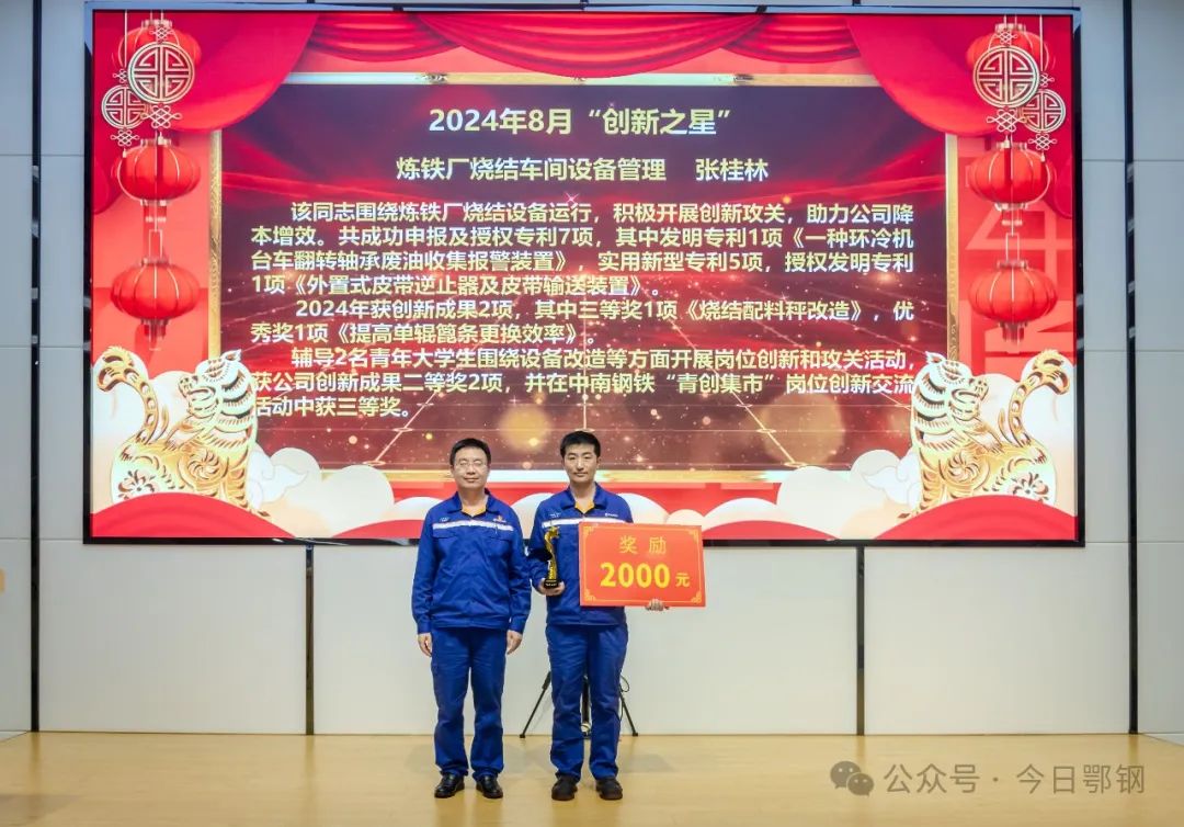 黨委副書記(主持工作)、副董事長(主持工作)陸隆文為8月份崗位“創新之星”頒獎。