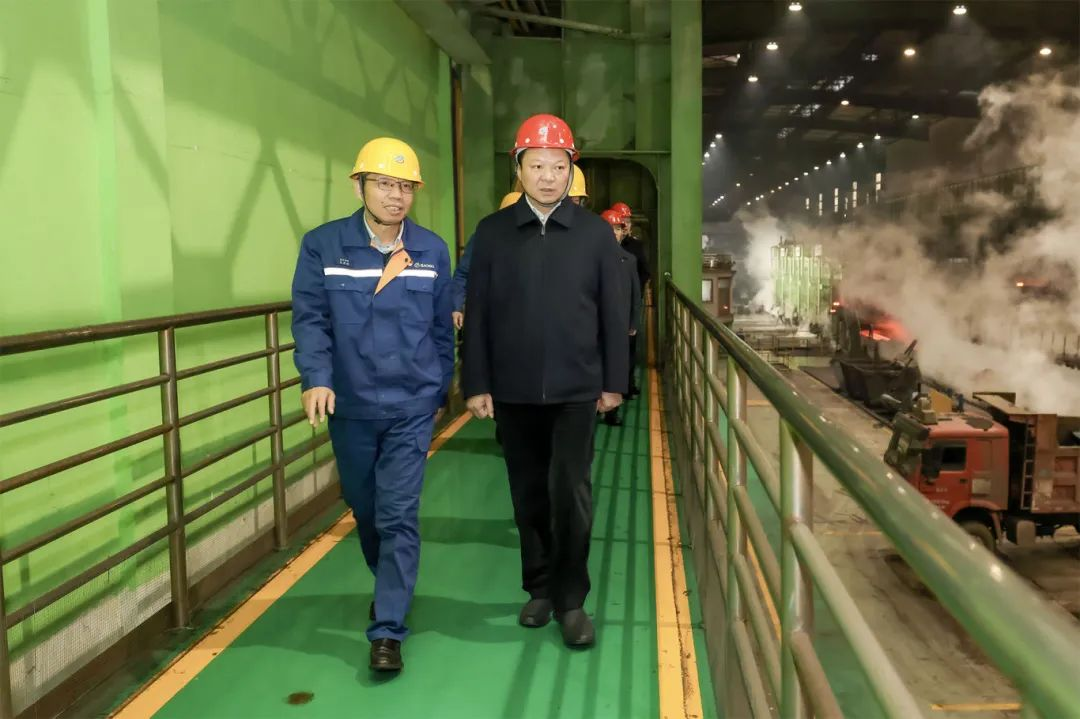 江夏一行深入軋鋼廠1780mm熱軋產線,詳細了解熱軋產線生產運行情況。調研中,王虎祥向江夏介紹了企業改革發展情況,重慶鋼鐵認真落實中國寶武“四化”“四有”發展要求,積極推進“近地化布局、產業鏈協同、工業園創新、生態圈構建”戰略布局,依托現有產品資源與廠區土地及廠房優勢,致力於鋼鐵產業鏈的拓展與深化,攜手上下遊企業共創集生產製造、鋼材深度加工及高效物流配送功能於一體的綜合性鋼材深加工產業生態圈,實現從“傳統製造角色”向“高品質材料服務提供者”的轉型蛻變。