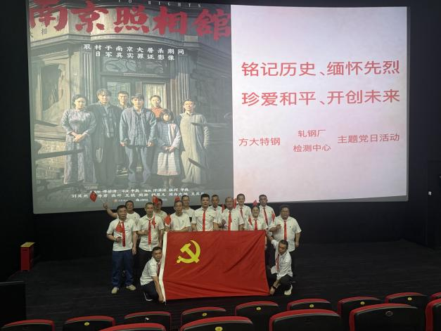 紅色光影映初心,砥礪奮進啟新程。為紀念中國人民抗日戰爭暨世界反法西斯戰爭勝利80周年,8月22日,方大特鋼軋鋼廠與檢測中心聯合組織43名黨員開展主題黨日活動,通過集中觀看紅色主題電影《南京照相館》,在光影流轉中重溫紅色記憶,從曆史深處汲取奮進力量。(李亞洲 萬軍)