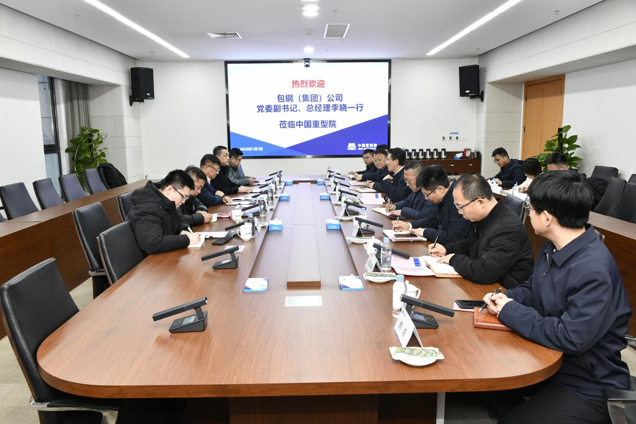 1月7日,包頭鋼鐵(集團)有限責任公司(下稱包鋼集團)黨委副書記、總經理李曉一行到訪中國重型院,中國重型院黨委書記、董事長王社昌熱情接待。