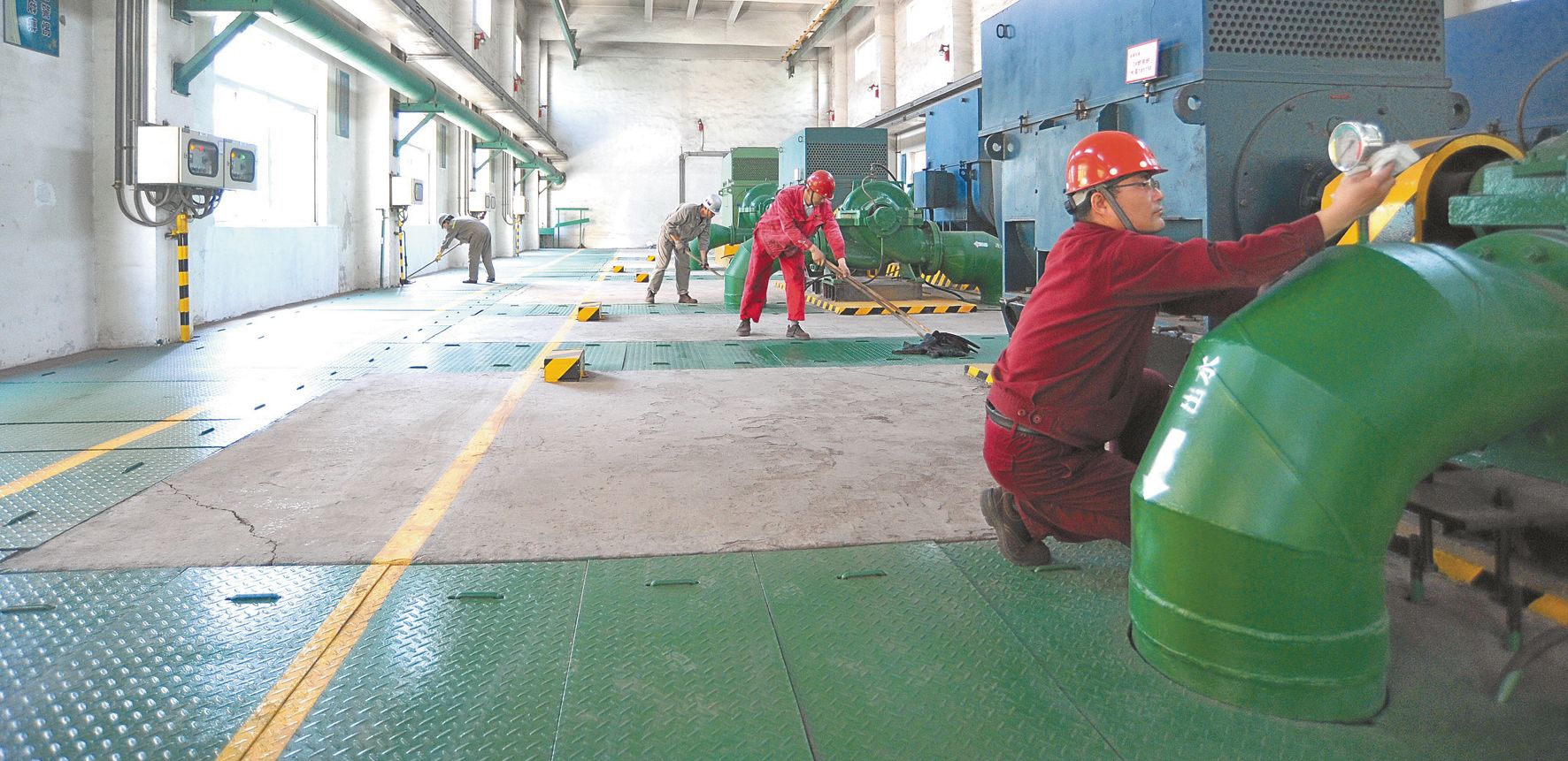 今年初以來,沙鋼電爐煉鋼廠一車間嚴格按照“一月一區一樣板”要求,全力推進水處理泵房的6S精益管理工作,通過現場製作TPM看板,明確設備點檢、清衛、潤滑基準,組織好每周一次排查與整改,為職工營造出一個幹淨、整潔、舒適的工作環境。圖為該車間職工正在清理水泵房環境衛生。 (孫靜波 李欣怡 攝)