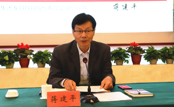 淮鋼公司總經理蔣建平在會上作重要講話