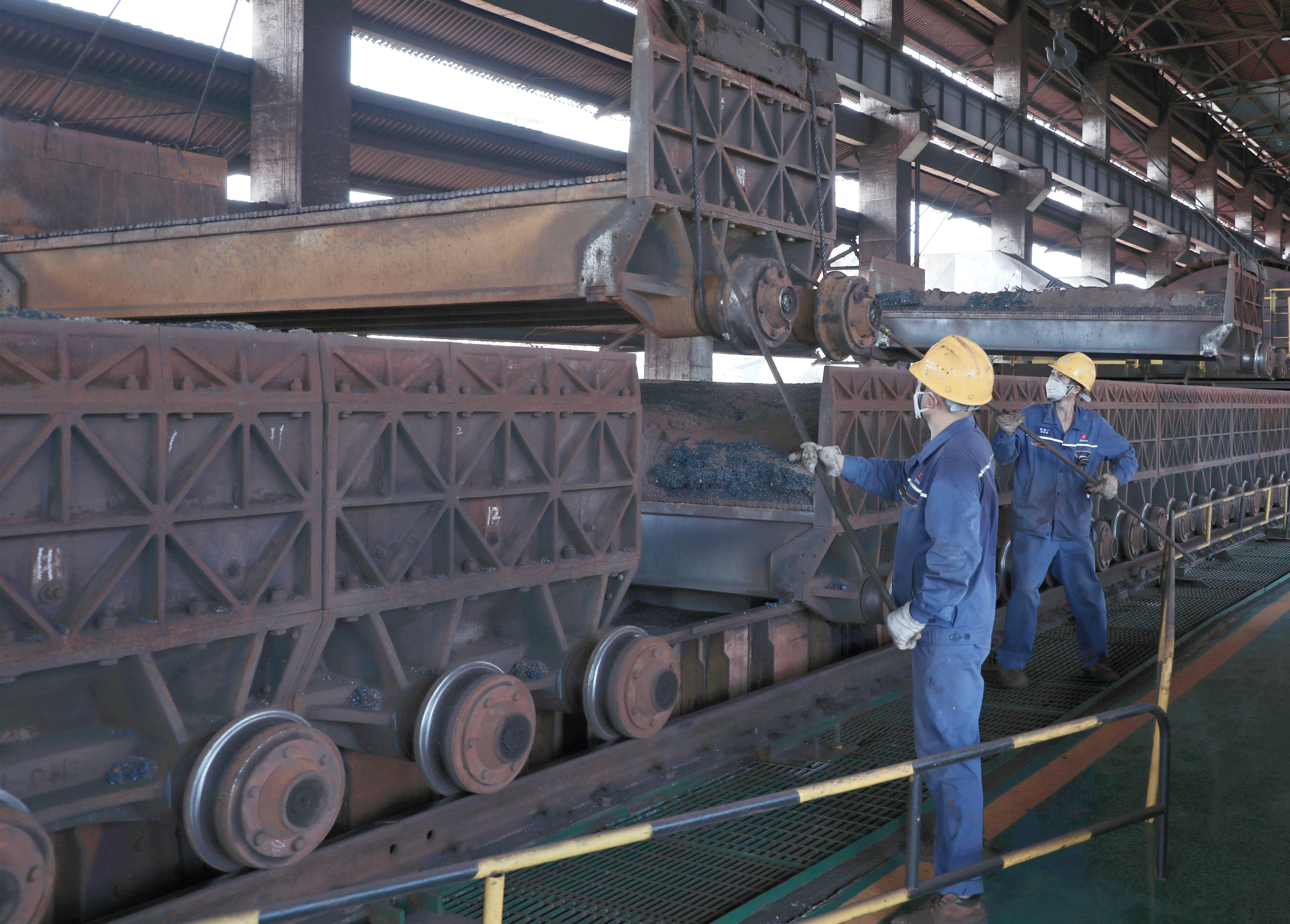 xiariyanyan,kushunannai。xinyugangtiegufenyouxiangongsiliantiechangzaizuzhixiajishengchanshi,chongfenfahuizhengheheli,qianghuajingyishengchanzuzhi,quanmiantuijinjiangbenzengxiaogongzuo。weiletigaoshaojiejizuoyelv,shaojiequgegangweizhigongqieshizhuahao崗檢、潤滑、維護、保養工作,加強各風箱、導氣管設施的日常點檢維護,做好堵漏風,使煙氣氧含量控製在14.5%以下,在提高燒結礦產量的同時,不斷降低電力消耗,及時更換在點檢中發現的燒結機故障台車。(萬新東 甘誌鴻/攝)