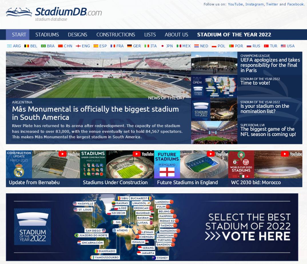 入圍2022年度全球最佳體育場名單。