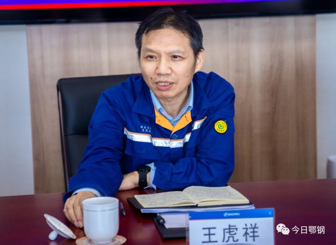 王虎祥對錢峰一行的到來表示歡迎,並介紹了鄂鋼發展曆程、智慧製造、綠色低碳等情況。他說,麵對鋼鐵“寒冬”,鄂鋼聚焦“三個極致”,大力實施“56210工程”,為完成2023年工作任務目標努力奮鬥。寶武清能鄂州公司作為“五元”單位,共同凝聚“同一個寶武”共識,在市場上堅持共進退、同發展,相互支持、共贏發展。