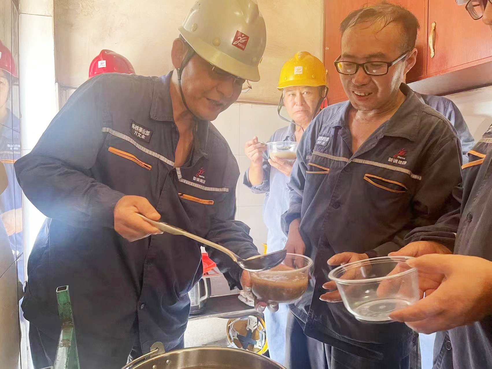 圖為新鋼集團煉鐵事業部球二作業區正在為職工派送冰綠豆飲品
