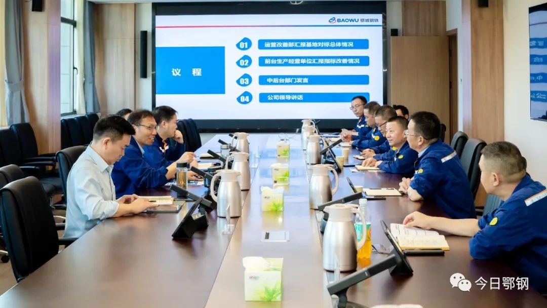 會上,運營改善部通報了基地對標總體情況,焦化公司、煉鐵廠、煉鋼廠、寬厚板廠、軋材廠、營銷中心等彙報了指標改善情況,製造管理部、設備管理部、能源環保部、物流管理部、經營財務部等分別發言。鄂城鋼鐵領導王虎祥、夏峰、黃大軍、徐東明參加會議。