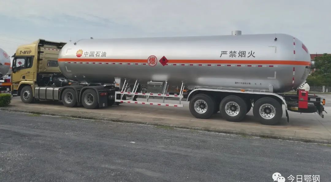 高強度移動壓力容器用鋼板作為鄂鋼拳頭產品,能有效減小罐車自重係數,擴大容重比,致使同等底盤時運輸物料能力提高了20%,同等容量時容重比提高了26%,不僅提高運載效率,而且為節能減排、碳達峰、碳中和作出應有的貢獻。