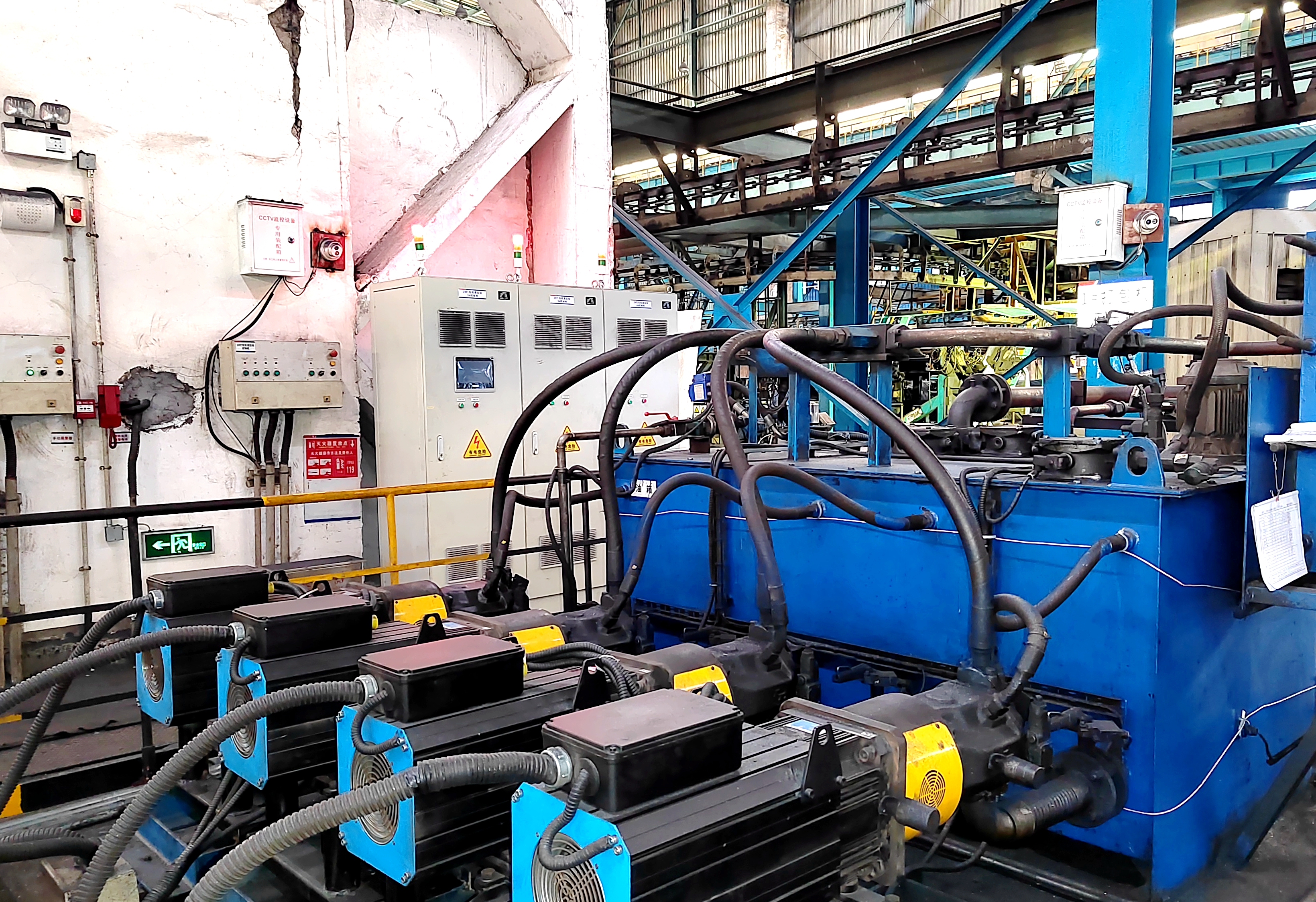 特軋廠chang高gao一yi液ye壓ya係xi統tong伺si服fu電dian機ji節jie能neng改gai造zao項xiang目mu是shi在zai高gao一yi線xian管guan理li水shui平ping大da幅fu提ti升sheng,產chan能neng大da幅fu釋shi放fang,月yue度du產chan量liang持chi續xu破po紀ji錄lu,單dan耗hao運yun行xing成cheng本ben增zeng加jia的de背bei景jing下xia,通tong過guo技ji術shu攻gong關guan挖wa掘jue出chu的de一yi個ge新xin的de節jie能neng降jiang耗hao金jin點dian子zi。根gen據ju用yong電dian數shu據ju測ce量liang,改gai造zao前qian,高gao一yi液ye壓ya係xi統tong平ping均jun每mei小xiao時shi總zong用yong電dian量liang高gao達da281.46kW,通過對軋線8個(ge)在(zai)線(xian)液(ye)壓(ya)係(xi)統(tong)高(gao)壓(ya)油(you)泵(beng)電(dian)機(ji)實(shi)施(shi)伺(si)服(fu)電(dian)機(ji)節(jie)能(neng)改(gai)造(zao),實(shi)現(xian)了(le)液(ye)壓(ya)係(xi)統(tong)運(yun)行(xing)穩(wen)定(ding)基(ji)礎(chu)上(shang),降(jiang)低(di)油(you)泵(beng)電(dian)機(ji)運(yun)行(xing)電(dian)耗(hao)的(de)目(mu)標(biao)。伺(si)服(fu)電(dian)機(ji)投(tou)入(ru)運(yun)行(xing)後(hou),液(ye)壓(ya)係(xi)統(tong)平(ping)均(jun)每(mei)小(xiao)時(shi)總(zong)用(yong)電(dian)量(liang)已(yi)下(xia)降(jiang)到(dao)145.07kW,伺服電機節電率達到48.46%,每年可降低電耗成本90萬元以上,節電效果明顯。