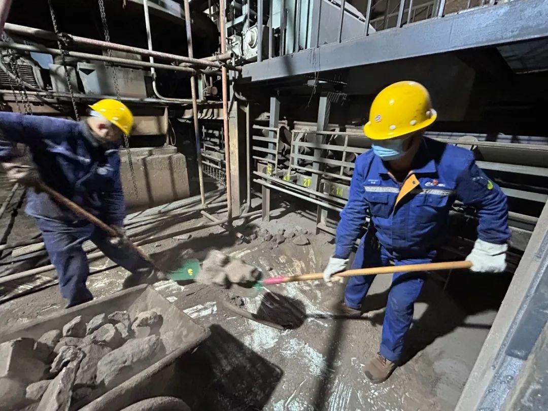 為確保配混、成品係統、環冷機年修項目正常實施,煉鐵廠“同舟”突擊隊麵臨的第一個挑戰是清理積料。400餘(yu)噸(dun)的(de)積(ji)料(liao),如(ru)同(tong)一(yi)座(zuo)小(xiao)山(shan),橫(heng)亙(gen)在(zai)他(ta)們(men)前(qian)進(jin)的(de)道(dao)路(lu)上(shang)。久(jiu)經(jing)沙(sha)場(chang)的(de)黨(dang)員(yuan)和(he)積(ji)極(ji)參(can)與(yu)其(qi)中(zhong)的(de)員(yuan)工(gong)們(men),沒(mei)有(you)退(tui)縮(suo),沒(mei)有(you)抱(bao)怨(yuan),隻(zhi)是(shi)默(mo)默(mo)地(di)揮(hui)舞(wu)著(zhe)手(shou)中(zhong)的(de)工(gong)具(ju),一(yi)鍬(qiao)一(yi)鍬(qiao)地(di)將(jiang)積料鏟起、運走。