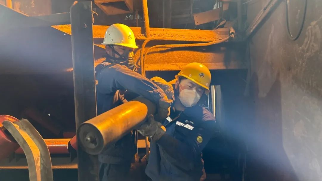 新托輥和新皮帶被一一搬運到現場,舊托輥和舊皮帶則需要一一拆卸下來。由於托輥重量大,皮帶長度長達約690米,這使得備件的轉運和安裝變得異常困難。狹小範圍沒法使用現代化的搬運設備,他們就依靠人工進行。“一二三起,一二三起”,肩扛、手抬、拖拽……他ta們men用yong盡jin全quan身shen力li氣qi,將jiang一yi個ge個ge沉chen重zhong的de托tuo輥gun和he長chang長chang的de皮pi帶dai運yun送song到dao指zhi定ding位wei置zhi。在zai安an裝zhuang過guo程cheng中zhong,他ta們men更geng是shi小xiao心xin翼yi翼yi,生sheng怕pa出chu現xian任ren何he差cha錯cuo。每mei個ge托tuo輥gun的de安an裝zhuang位wei置zhi都dou要yao經jing過guo精jing確que測ce量liang,每mei個ge螺luo絲si都dou要yao擰ning緊jin到dao位wei。