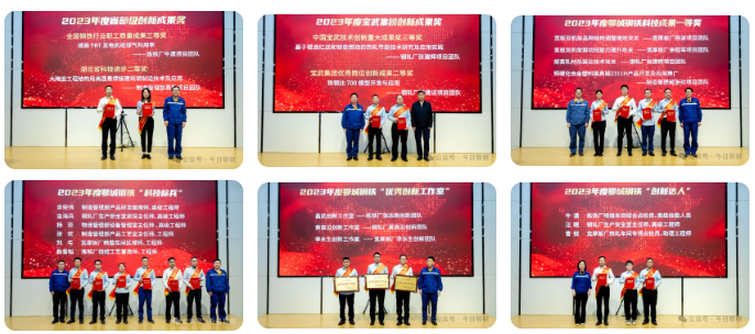 會上,該公司領導對榮獲2023年度鄂城鋼鐵“創新達人”“優秀創新工作室”、科技成果獎一等獎和寶武集團創新成果獎及省部級創新成果獎等先進集體和個人現場頒獎。