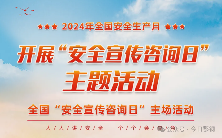 根據寶武集團、中南鋼鐵有關工作部署,各廠部要積極參加“安全生產大講堂”“安康護航”“健康寶武”行動專題培訓,公司也將結合實際組織全員安全考試,參與6月16日鄂州市“安全宣傳谘詢日”活動。