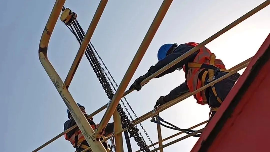 因隱患部位在門機21米高空處,屬於一級高危作業,且作業區域空間狹窄,初步計劃需3天完成檢修工作。考慮到40T門機生產的重要性,港務公司精心組織備件,合理編製施工方案,嚴格落實安全防範措施,精細化管理檢修過程,在1天時間內完成檢修工作,避免了因檢修造成的2萬餘噸鋼材裝船外發的生產延誤。(陳兵 陳亮)