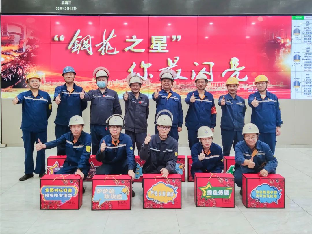 2023年3月,重慶鋼鐵公司煉鋼廠開展了首屆評選“鋼花之星”活動。此後每個月,煉鋼廠分別在一轉爐、二轉爐作業區24個冶煉班,一連鑄、二連鑄作業區28個澆鋼班之間開展評比。根據“鋼鐵料消耗、平均石灰、責任非計劃斷澆、漏鋼事故”等重點生產經營指標,製定競賽方案,綜合評分最高的班組,獲“鋼花之星”稱號。