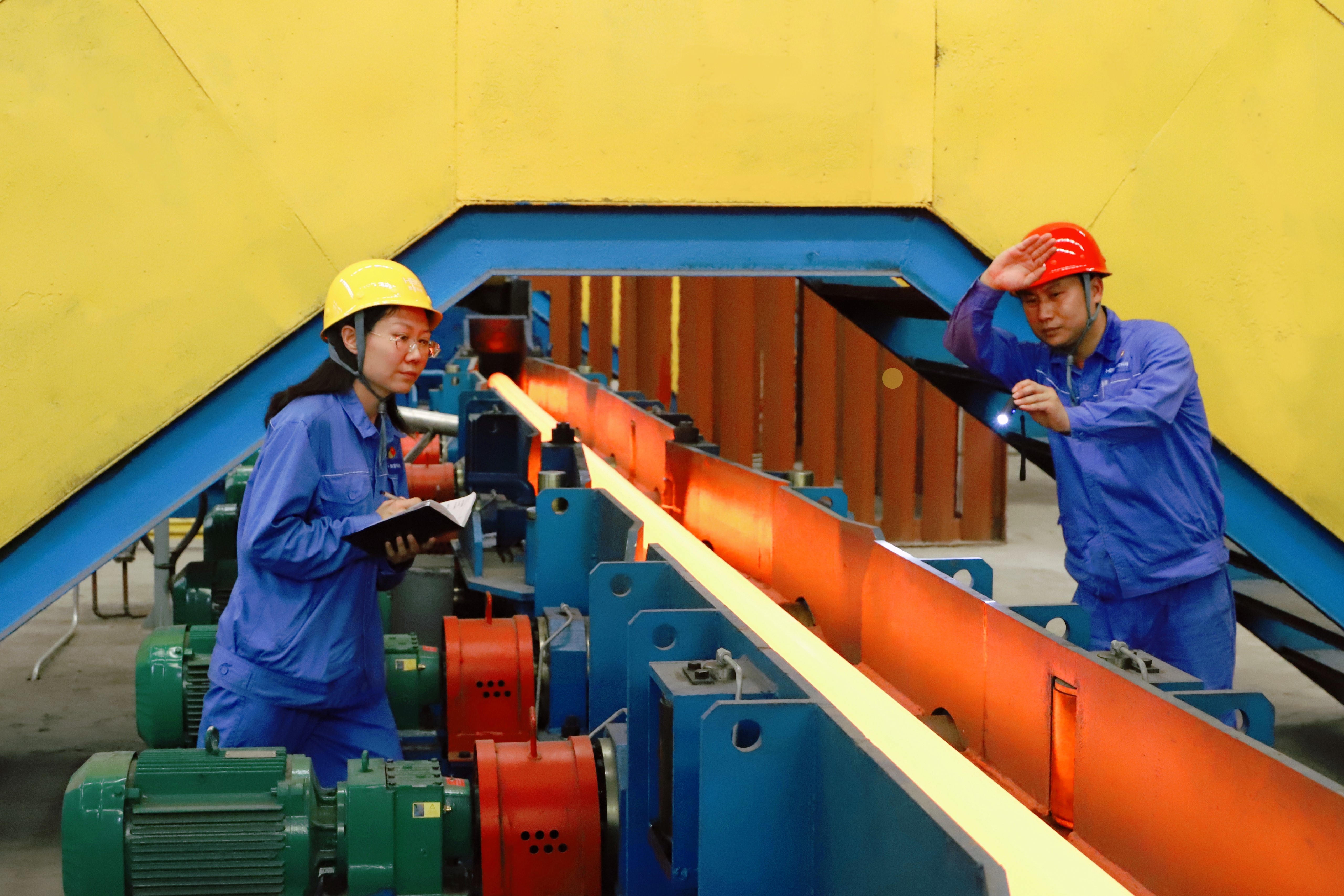 金屬材料公司技術人員正在進行特鋼棒材產品質量檢查