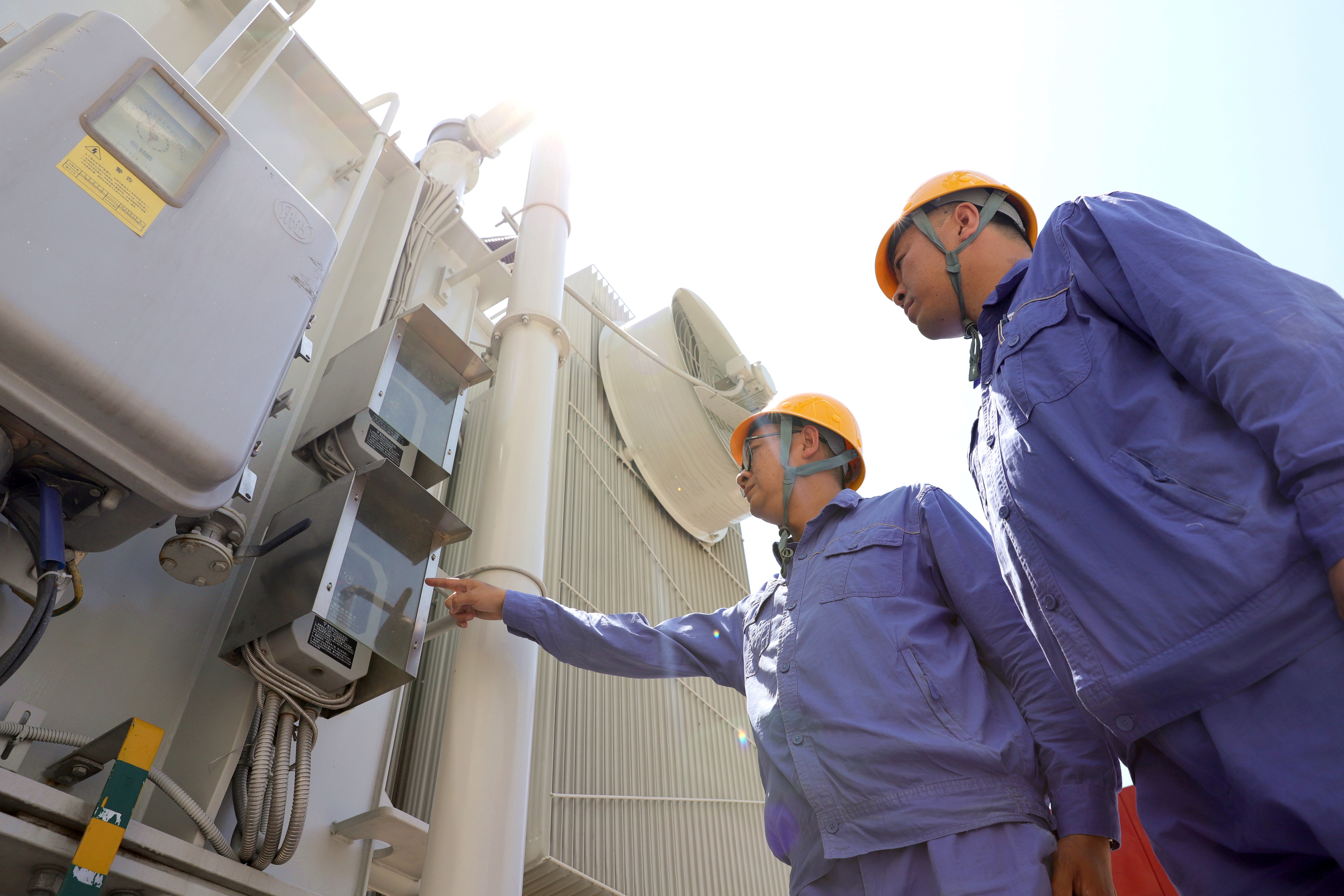 設備能源部鍥金220kV變電站職工正在對變壓器進行點檢