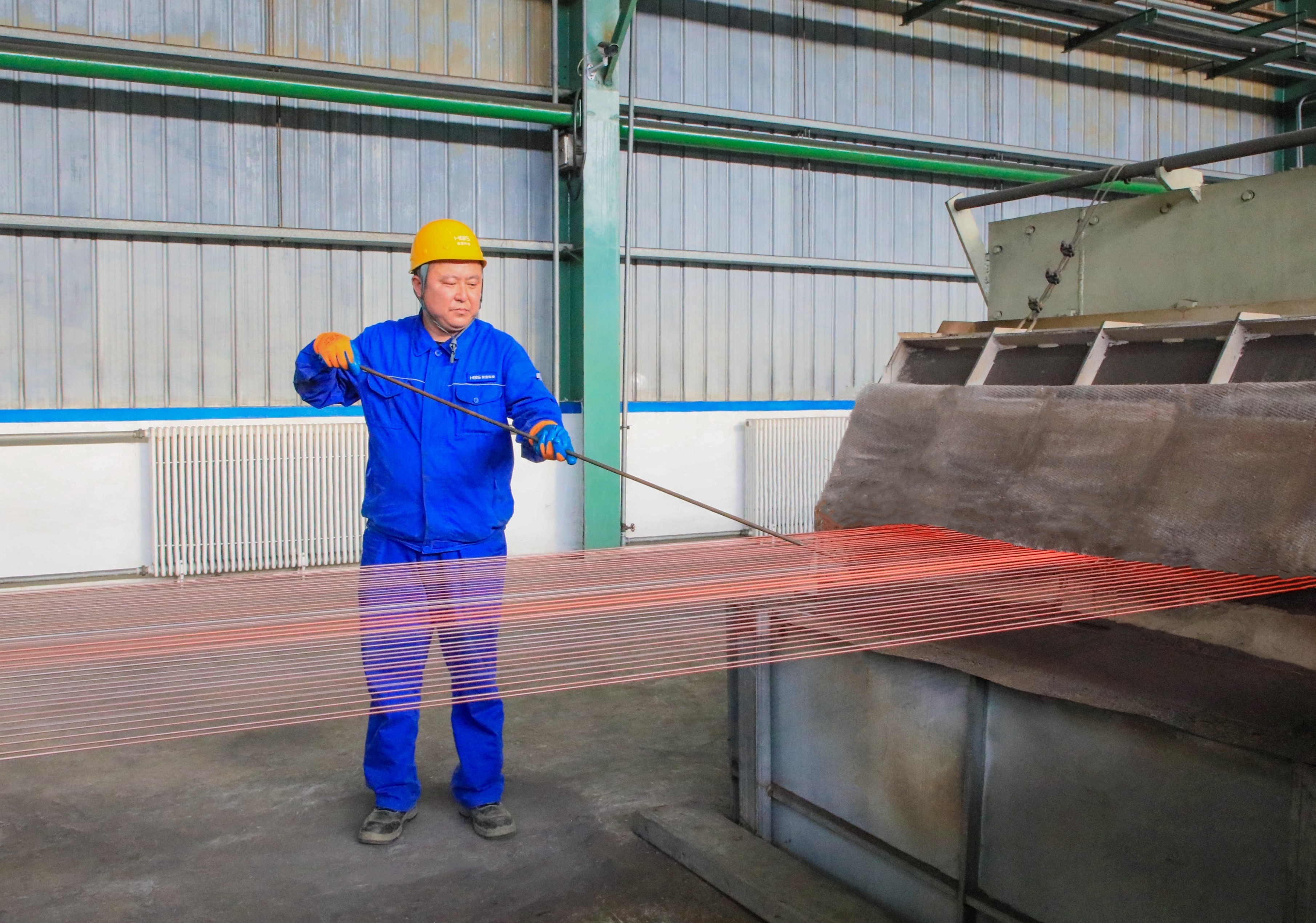 金屬製品公司鍍鋅線職工正在明火爐出口布線