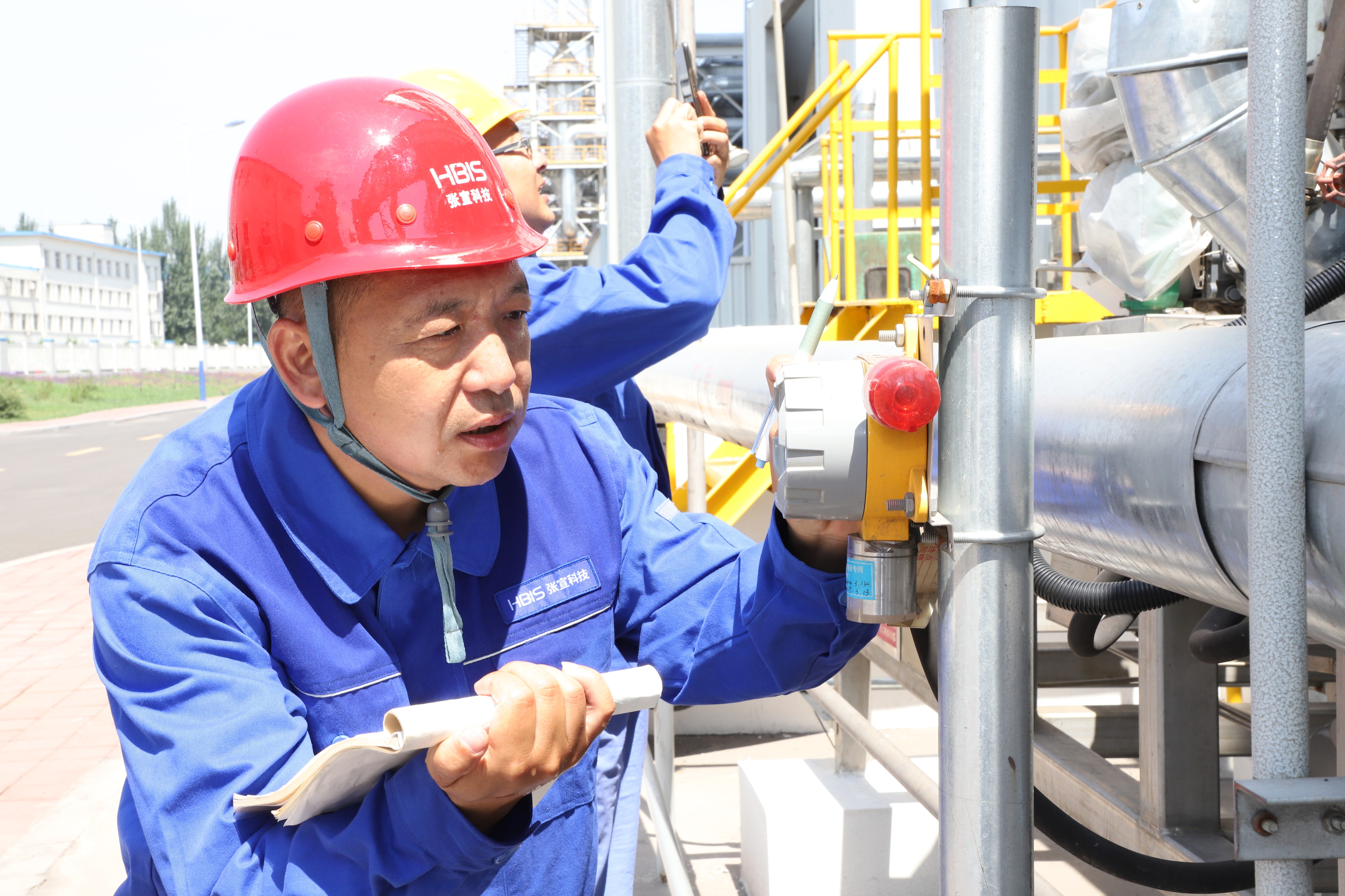 維檢技術人員正在對氫冶金係統內危化報警裝置進行檢查