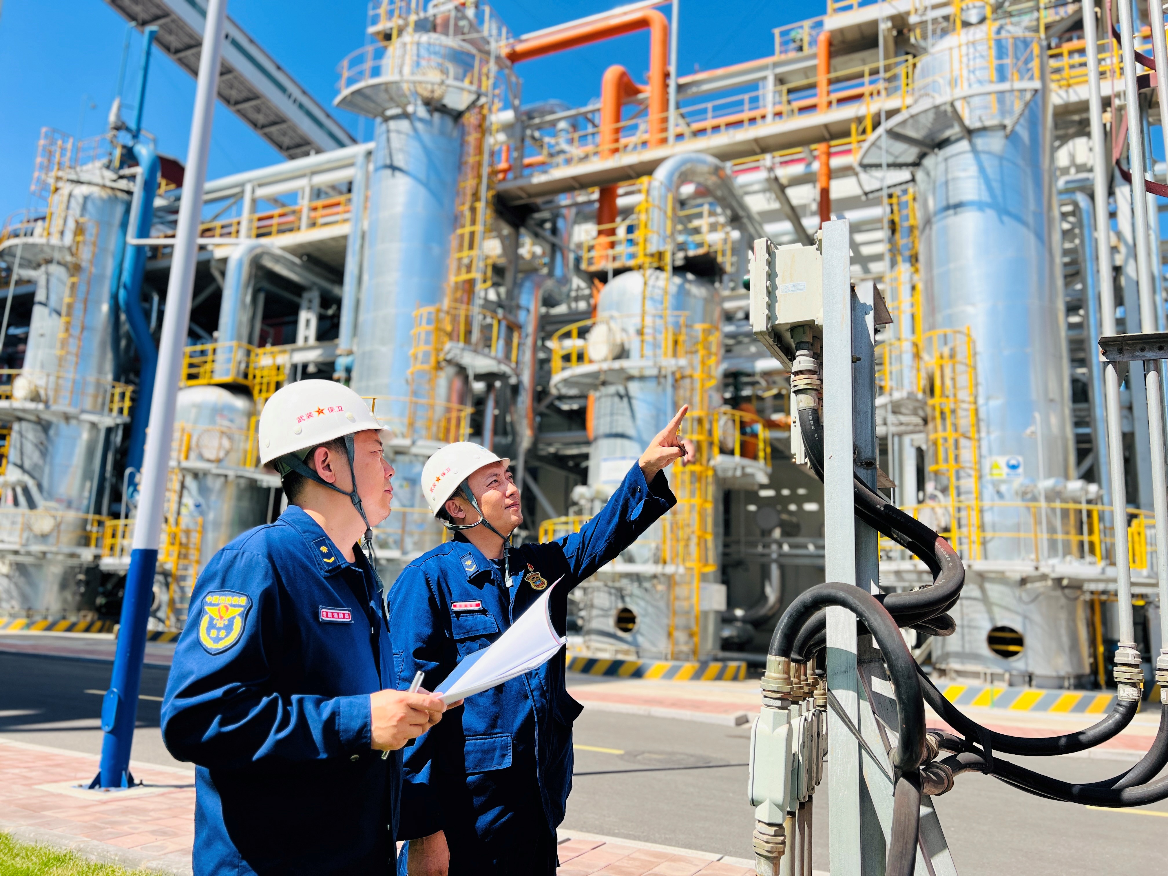冶金科技公司職工正在對廠區外圍配套設備進行點檢,保障高溫條件下設備工況穩定