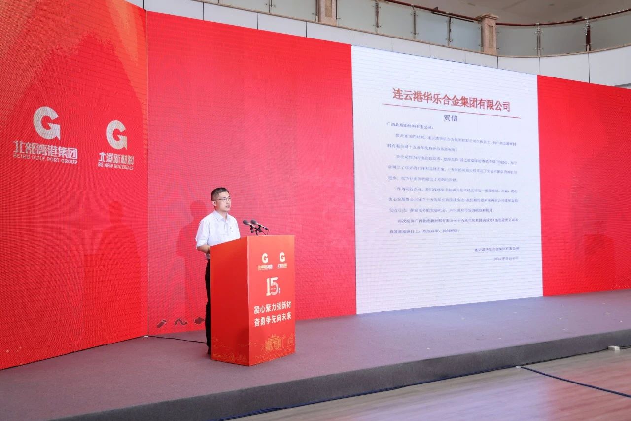 7月23日,北部灣港旗下北港新材料在北海舉行成立十五周年主題活動大會,該集團公司黨委書記、董事長周少波發來賀信,表示熱烈祝賀。北海市副市長、黨組成員孫環誌,中國鋼鐵工業協會不鏽鋼分會執行會長張誌方,集團公司副總經理、北港新材料公司黨委書記、董事長潘料庭出席活動。