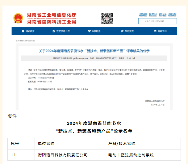 鐳目“電動非正弦振動控製係統”入選湖南省2024年度節能節水“新技術、新裝備和新產品”名單