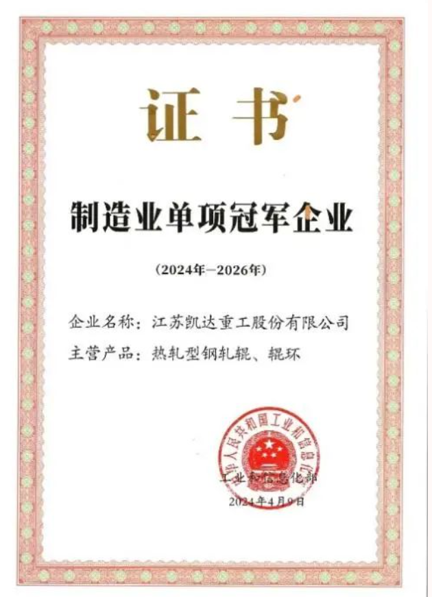凱達重工幾十年如一日專注於熱軋型鋼軋輥、輥環等金屬軋製關鍵部件的研發、生產、銷售,年產軋輥38000噸,產品最大淨重可達50噸。該公司作為國內熱軋型鋼軋輥行業的頭部企業,分別擔任中國鑄造協會軋輥分會輪值理事長單位、中國鋼鐵工業協會冶金設備分會副會長單位,並作為第一起草單位主持編製了《熱軋型鋼軋輥》(YB/T 4906-2021)行業標準,以及參加《冶金軋輥術語》(GB/T 15546-2022)、 《鑄鋼軋輥》(GB/T 1503-2024)、《鑄鐵軋輥》(GB/T 1504-2024)三項國家標準的修訂。公司目前擁有專利74項,其中發明專利36項。