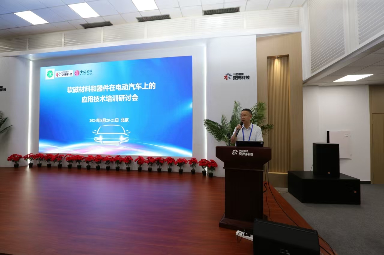 2024年8月20日-21日,由電動汽車產業技術創新戰略聯盟(以下簡稱“聯盟”)與中信金屬股份有限公司(以下簡稱“中信金屬”)和安泰科技股份有限公司(以下簡稱“安泰科技”)共gong同tong組zu織zhi的de軟ruan磁ci材cai料liao和he器qi件jian在zai電dian動dong汽qi車che上shang的de應ying用yong技ji術shu培pei訓xun研yan討tao會hui在zai安an泰tai科ke技ji永yong豐feng產chan業ye園yuan成cheng功gong舉ju辦ban。中zhong國guo汽qi車che工gong程cheng學xue會hui汽qi車che電dian動dong化hua研yan究jiu中zhong心xin副fu主zhu任ren劉liu國guo芳fang女nv士shi、中信金屬副總經理兼總工程師郭愛民、安泰科技副總經理王鐵軍、巴西礦冶公司商務專家尤裏·米蘭達、北京交通大學教授盧誌超,以及來自整車、電機電控、器件企業和高校、科研院所的70餘位代表參加了本次會議。
