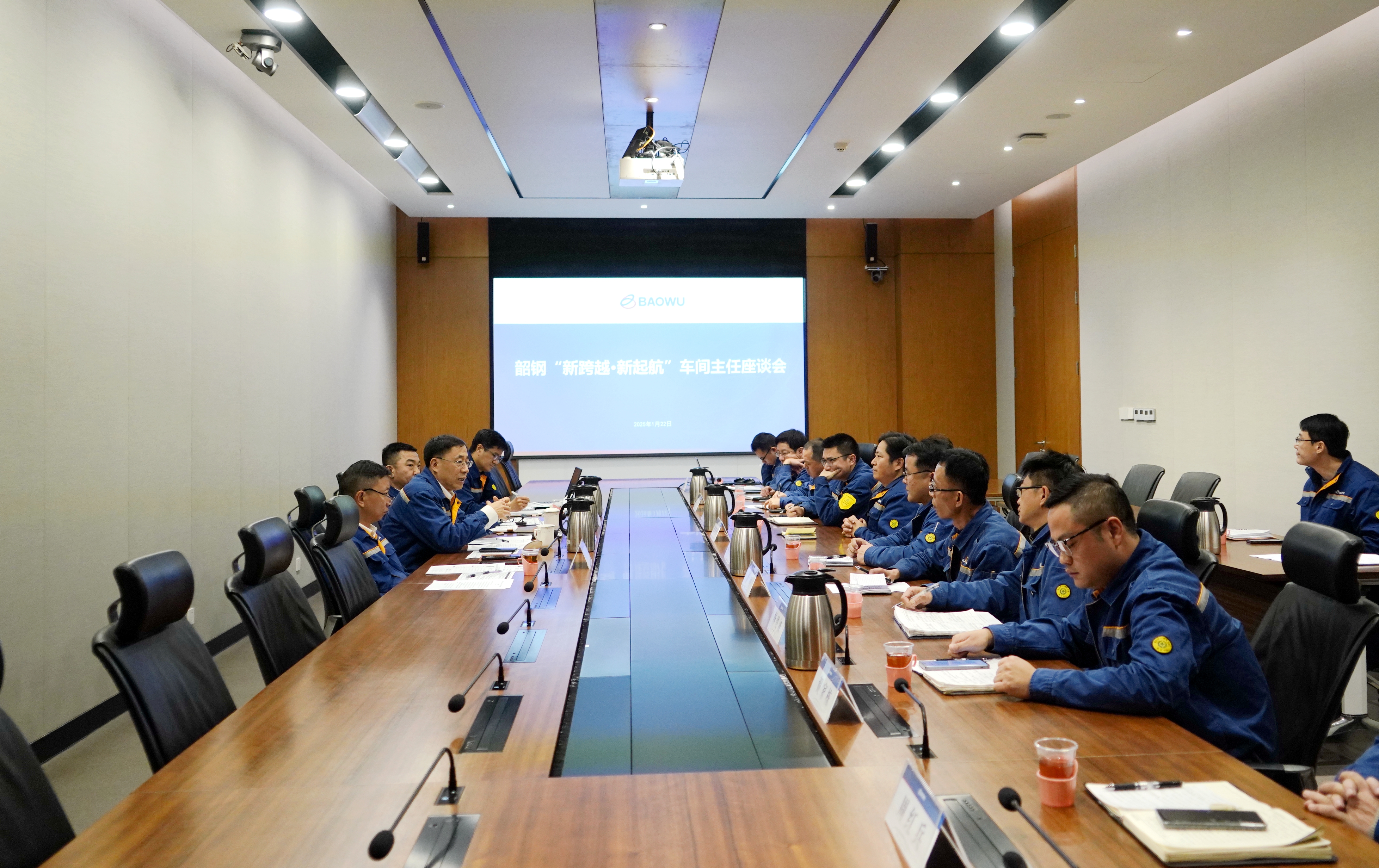 1月22日,寶武集團中南股份舉行“新跨越·新起航”車間主任座談會。中南鋼鐵黨委常委、中南股份總裁蘭銀,中南股份黨委委員、高級副總裁(常務)李國權參加座談交流。