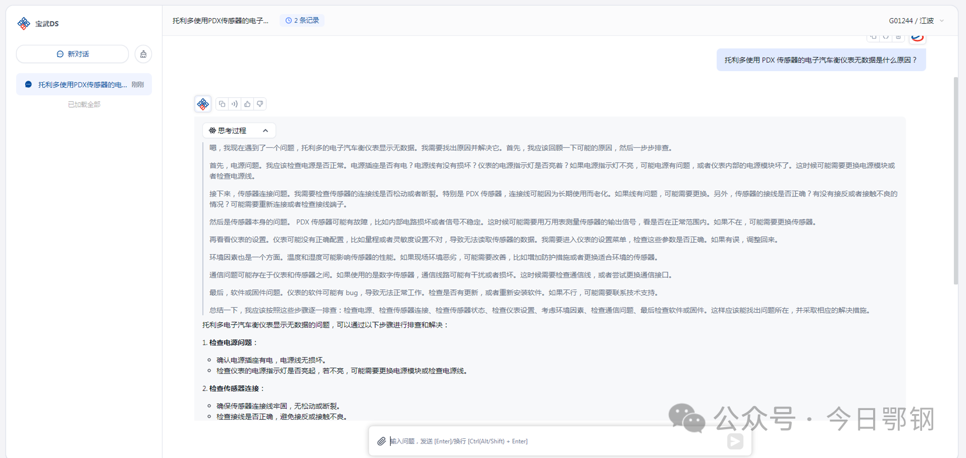 班yuanxiaoguogeijiangbodalailedianhua,yuanlaishixianchangqichehengturanwushuju。mianduizheturuqilaideguzhang,jiangbobingmeiyouhuangzhang。tajiangguzhangxianxiangjixianchanghuanjingxinxishurudaoDeepSeek中。幾秒鍾後,DeepSeek給出了出現此故障的多種可能性原因分析。