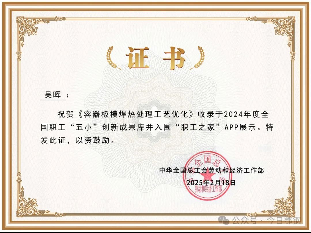 《容器板模焊熱處理工藝優化》項目一路“開掛”