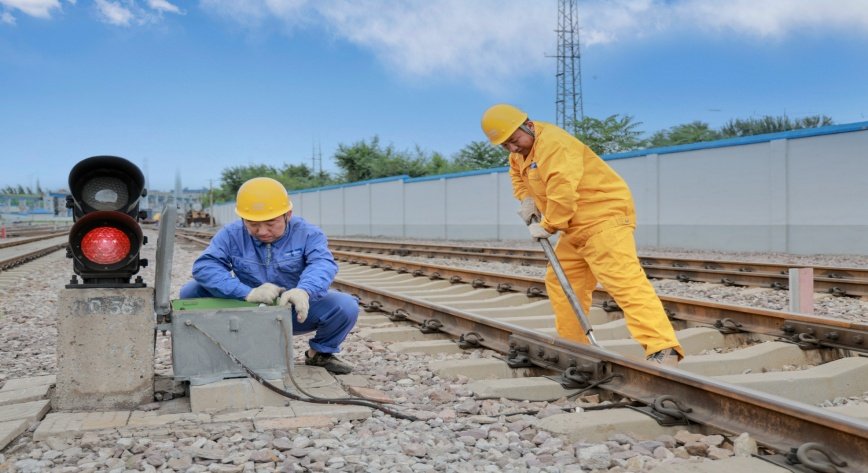 圖為張宣科技物流公司技術人員正在對鐵路信號設備進行巡查整改 劉寧攝