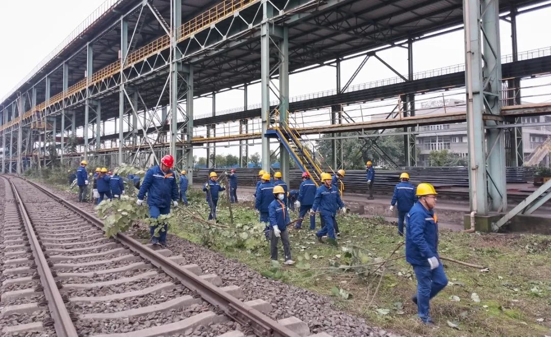 一名黨員一麵旗幟。物流運輸部集結30餘名職能室黨員齊聚鐵路庫北側貨二線鐵路沿線,他們兵分兩路,對沿線的雜草、垃圾等展開“清潔風暴”行動。麵對雜草雜樹,誌願者們巧用"鐮刀+電鋸"組合,地毯式進行清理清掃,讓荒蕪的鐵路線重現透亮光彩。