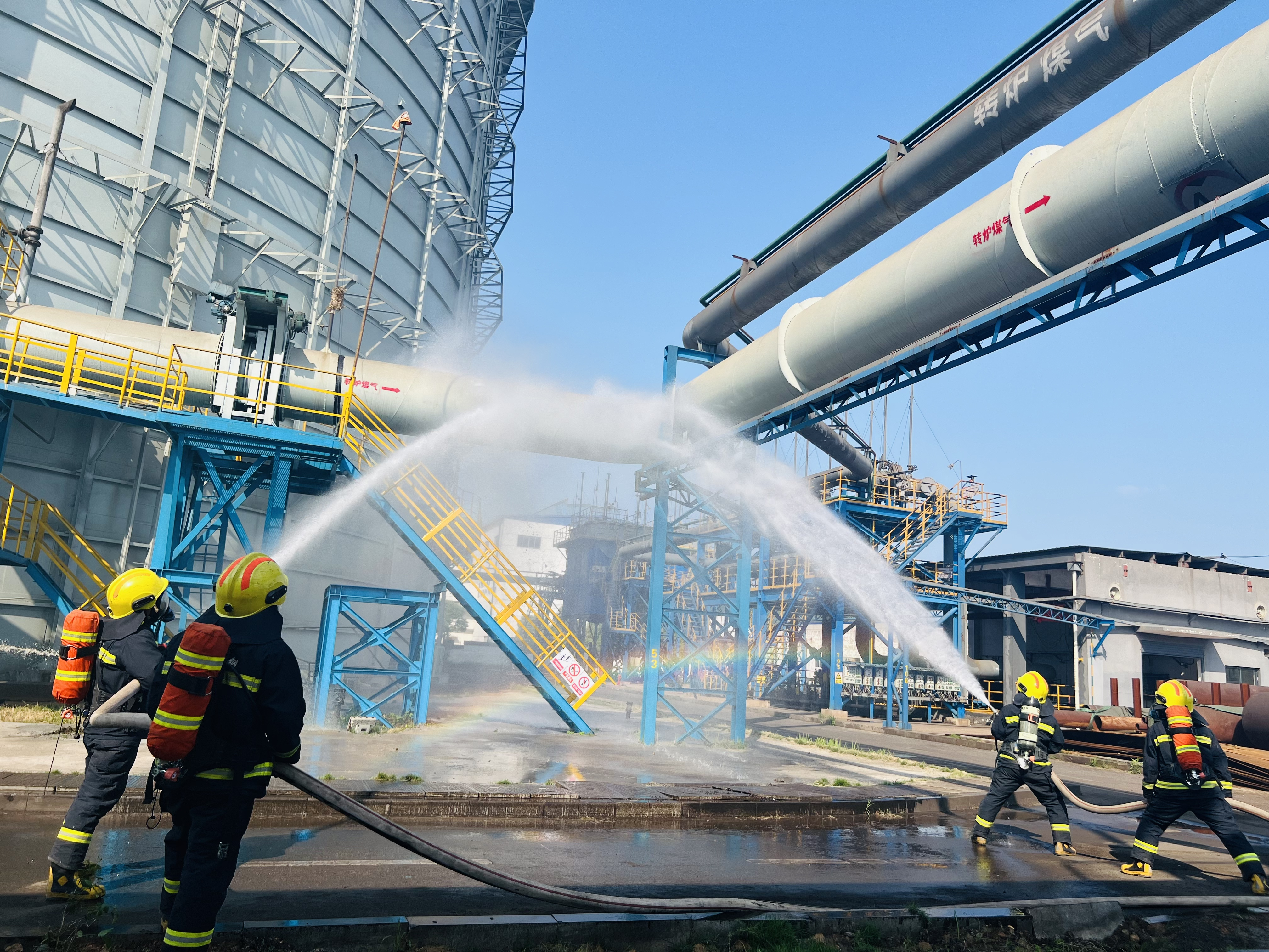 該公司還舉辦了八萬氣櫃煤氣中毒、火災事故應急演練,演練模擬兩名員工在操作氣櫃出口倒盲板閥時,因閥板卡阻導dao致zhi煤mei氣qi大da量liang泄xie漏lou,引yin發fa人ren員yuan中zhong毒du及ji火huo災zai事shi故gu後hou的de緊jin急ji處chu置zhi過guo程cheng,全quan麵mian檢jian驗yan煤mei氣qi事shi故gu專zhuan項xiang應ying急ji預yu案an的de實shi用yong性xing和he科ke學xue性xing,進jin一yi步bu提ti升sheng員yuan工gong突tu發fa事shi故gu應ying急ji處chu置zhi能neng力li,確que保bao員yuan工gong生sheng命ming安an全quan和he企qi業ye財cai產chan安an全quan。