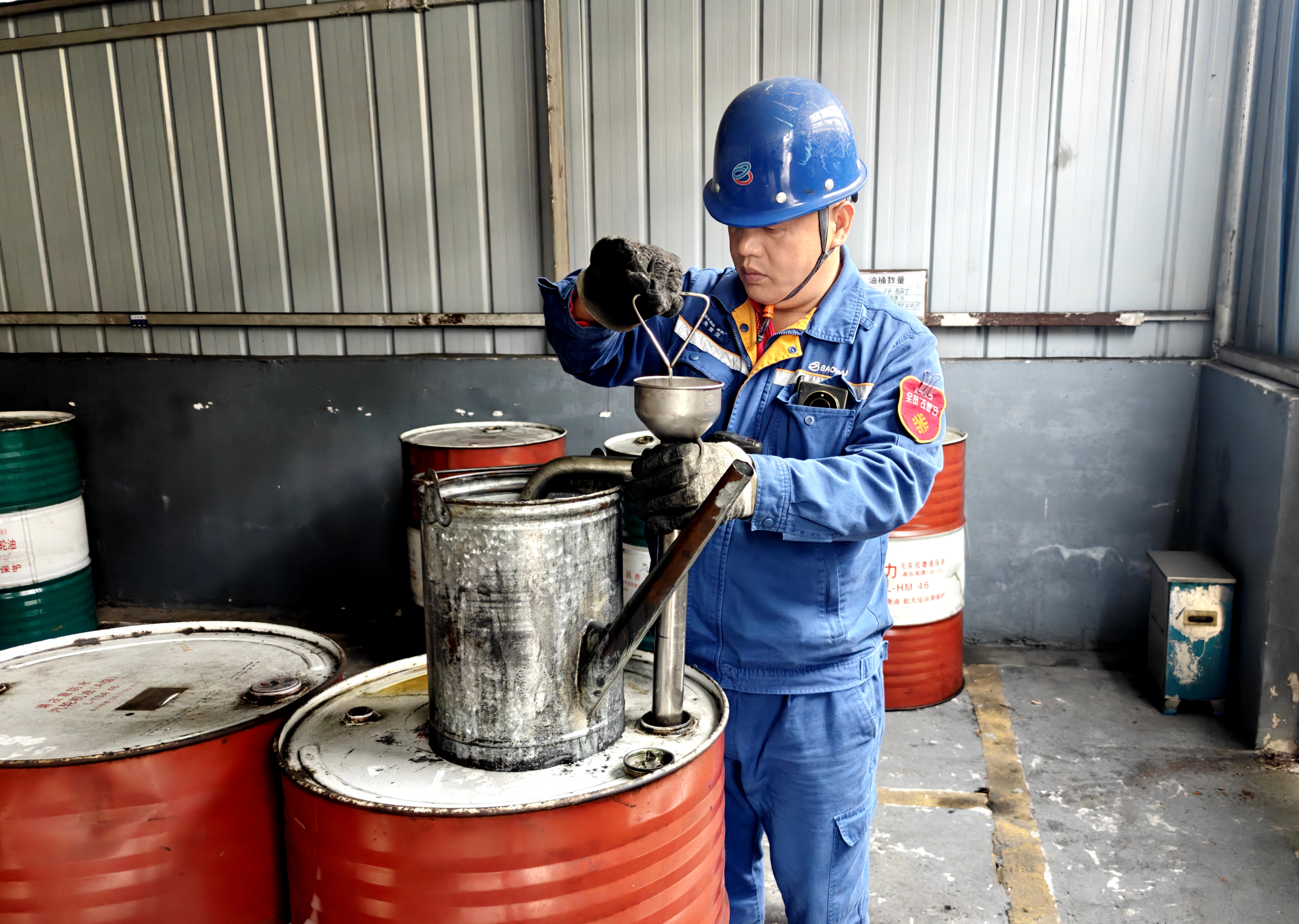 麵對3號CDQ油站抽油作業中“汙染、灑漏、雜質”三大痛點,班長李翔帶領團隊對照“操作精細化”標準,實測20組數據後繪製工具草圖,通過角鋼支架實現油抽與桶底5cm精準控距,以可調節抽管解決落差難題,配套瀝幹槽設計踐行“效益最大化”目標。該工具投用後,單油站年節約損耗1200元,一人操作效率提升50%,將“有作為”的要求落實到每一滴油的精益管理中。